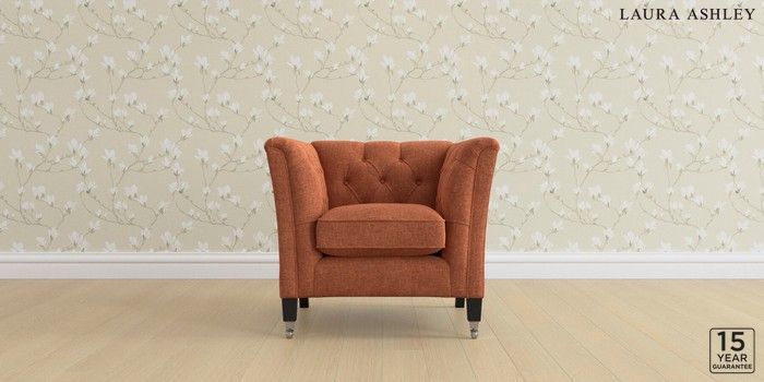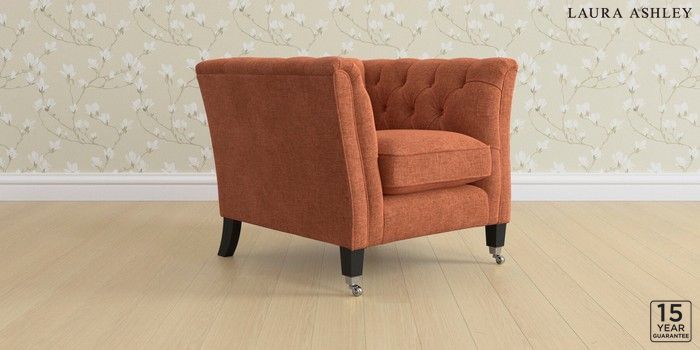 6.12.1 Buy Chatsworth Button Back by Laura Ashley Armchair Nantmor Rust Orange Straight Chrome Castor - Black from the Laura Ashley online shop Click here to use our website with more accessibility support, for example screen readers