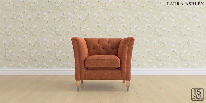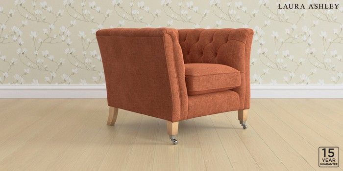 6.12.13 Buy Chatsworth Button Back by Laura Ashley Armchair Nantmor Rust Orange Straight Chrome Castor - Light Oak from the Laura Ashley online shop Click here to use our website with more accessibility support, for example screen readers