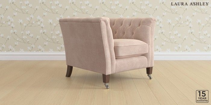 6.12.1 Buy Chatsworth Button Back by Laura Ashley Armchair Orla Chalk Pink Straight Chrome Castor - Chestnut from the Laura Ashley online shop Click here to use our website with more accessibility support, for example screen readers