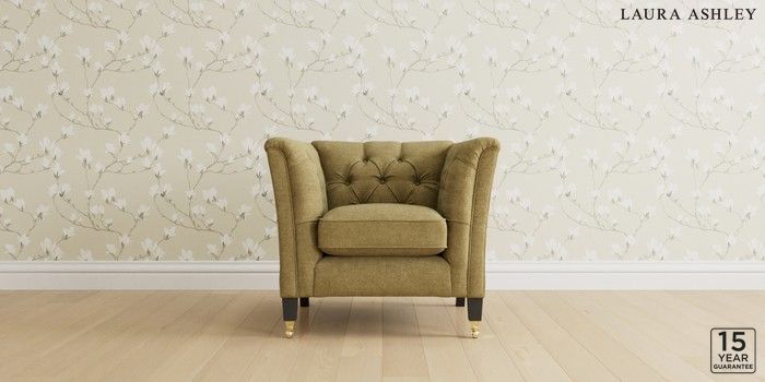 6.12.13 Buy Chatsworth Button Back by Laura Ashley Armchair Orla Gold Natural Straight Brass Castor - Black from the Laura Ashley online shop Click here to use our website with more accessibility support, for example screen readers