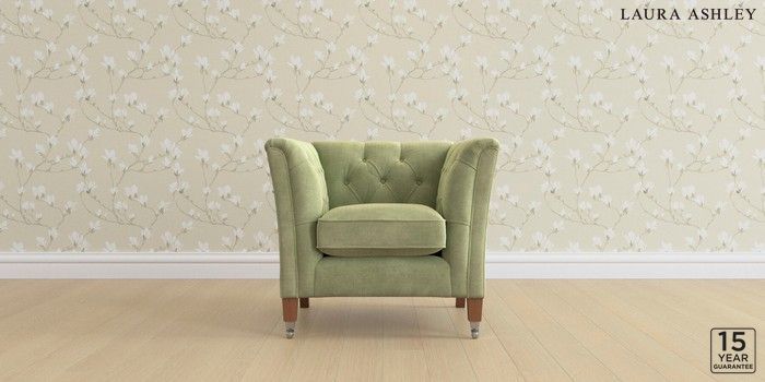 6.12.1 Buy Chatsworth Button Back by Laura Ashley Armchair Orla Pale Hedgerow Green Straight Chrome Castor - Teak from the Laura Ashley online shop Click here to use our website with more accessibility support, for example screen readers