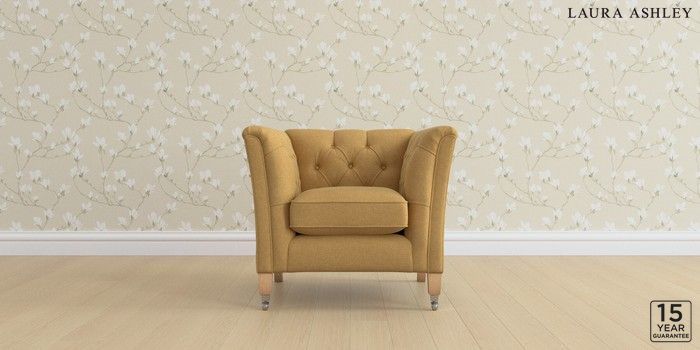 6.12.1 Buy Chatsworth Button Back by Laura Ashley Armchair Peyton Ochre Yellow Straight Chrome Castor - Light Oak from the Laura Ashley online shop Click here to use our website with more accessibility support, for example screen readers