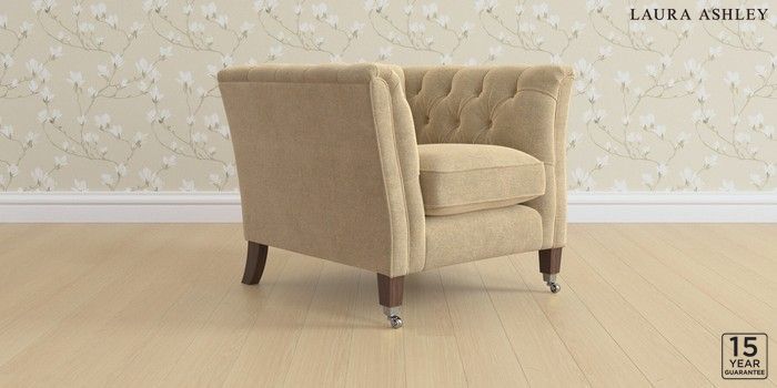 6.12.1 Buy Chatsworth Button Back by Laura Ashley Armchair Peyton Sable Natural Straight Chrome Castor - Chestnut from the Laura Ashley online shop Click here to use our website with more accessibility support, for example screen readers