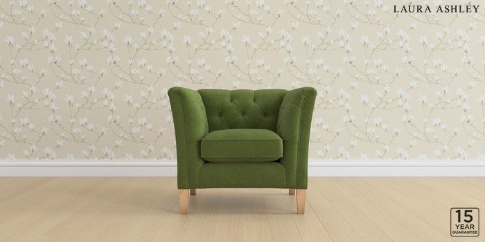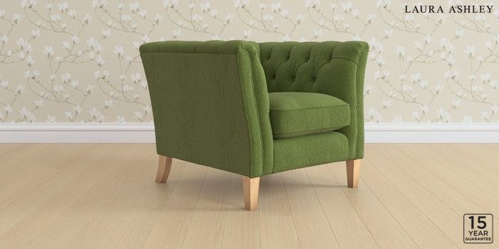 6.12.1 Buy Chatsworth Button Back by Laura Ashley Armchair Tichwell Olive Green Straight Mid - Light Oak from the Laura Ashley online shop Click here to use our website with more accessibility support, for example screen readers