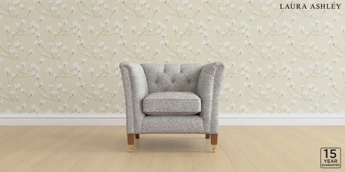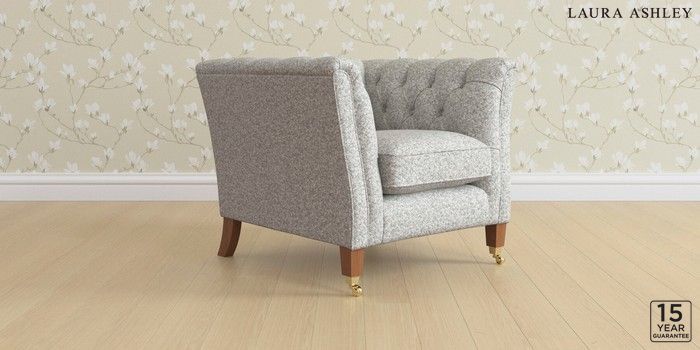 6.12.1 Buy Chatsworth Button Back by Laura Ashley Armchair Tichwell Steel Grey Straight Brass Castor - Teak from the Laura Ashley online shop Click here to use our website with more accessibility support, for example screen readers