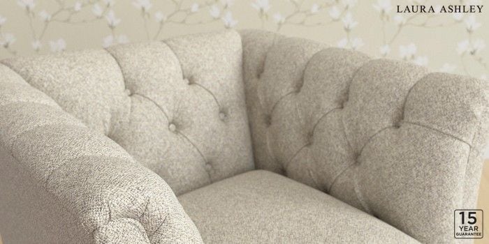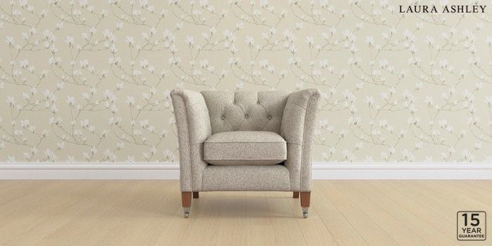 6.12.1 Buy Chatsworth Button Back by Laura Ashley Armchair Tichwell Stone Natural Straight Chrome Castor - Teak from the Laura Ashley online shop Click here to use our website with more accessibility support, for example screen readers