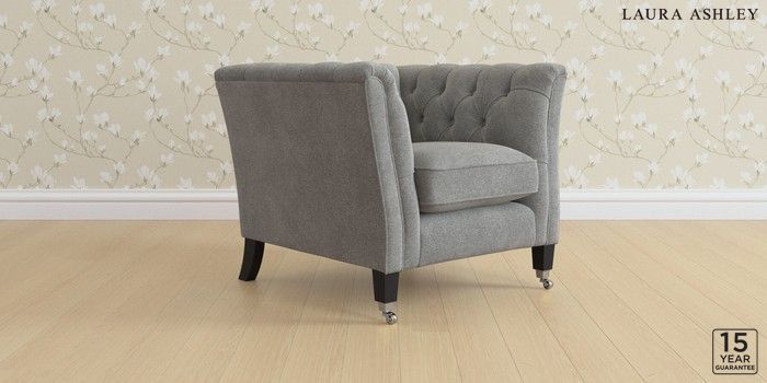 6.12.1 Buy Chatsworth Button Back by Laura Ashley Armchair Wooton Dark Steel Grey Straight Chrome Castor - Black from the Laura Ashley online shop Click here to use our website with more accessibility support, for example screen readers
