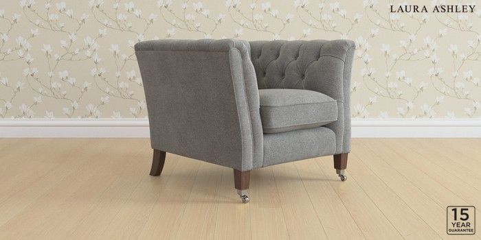 6.12.1 Buy Chatsworth Button Back by Laura Ashley Armchair Wooton Dark Steel Grey Straight Chrome Castor - Chestnut from the Laura Ashley online shop Click here to use our website with more accessibility support, for example screen readers