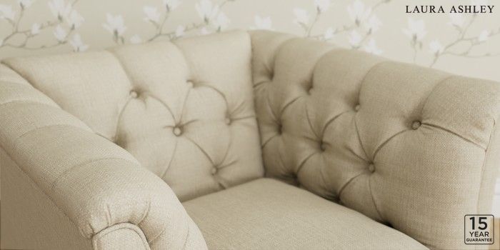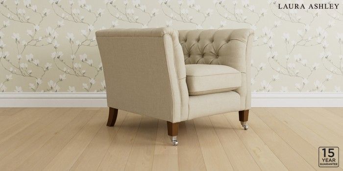 6.12.1 Buy Chatsworth Button Back by Laura Ashley Armchair Wooton Natural Straight Chrome Castor - Teak from the Laura Ashley online shop Click here to use our website with more accessibility support, for example screen readers