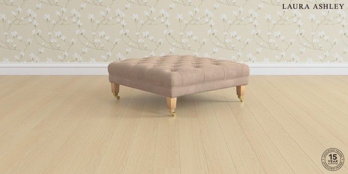 6.12.1 Buy Chatsworth Button Back by Laura Ashley Extra Large Footstool Ailsworth Mink Natural Straight Brass Castor - Light Oak from the Laura Ashley online shop Click here to use our website with more accessibility support, for example screen readers