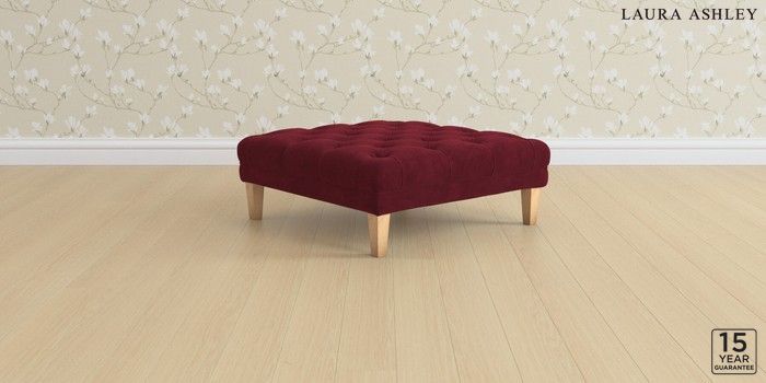 6.12.1 Buy Chatsworth Button Back by Laura Ashley Extra Large Footstool Alwyn Velvet Burgundy Red Straight Mid - Light Oak from the Laura Ashley online shop Click here to use our website with more accessibility support, for example screen readers