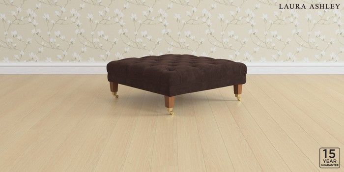 6.12.13 Buy Chatsworth Button Back by Laura Ashley Extra Large Footstool Alwyn Velvet Chocolate Brown Straight Brass Castor - Teak from the Laura Ashley online shop Click here to use our website with more accessibility support, for example screen readers
