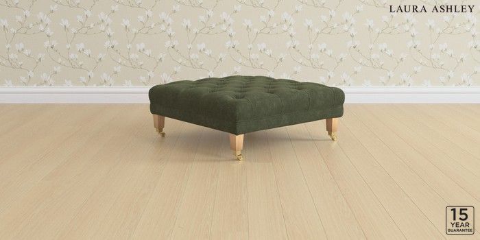 6.12.1 Buy Chatsworth Button Back by Laura Ashley Extra Large Footstool Alwyn Velvet Ivy Green Straight Brass Castor - Light Oak from the Laura Ashley online shop Click here to use our website with more accessibility support, for example screen readers
