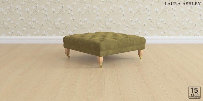 6.12.1 Buy Chatsworth Button Back by Laura Ashley Extra Large Footstool Alwyn Velvet Olive Green Straight Brass Castor - Light Oak from the Laura Ashley online shop Click here to use our website with more accessibility support, for example screen readers