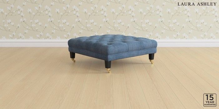 6.12.1 Buy Chatsworth Button Back by Laura Ashley Extra Large Footstool Edwin Chenille Seaspray Blue Straight Brass Castor - Black from the Laura Ashley online shop Click here to use our website with more accessibility support, for example screen readers