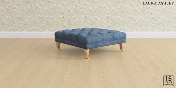 6.12.1 Buy Chatsworth Button Back by Laura Ashley Extra Large Footstool Edwin Chenille Seaspray Blue Straight Brass Castor - Light Oak from the Laura Ashley online shop Click here to use our website with more accessibility support, for example screen readers