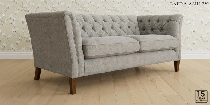 6.12.1 Buy Chatsworth Button Back by Laura Ashley 3 Seater Small Sofa Orla Pale Steel Grey Straight Mid - Teak from the Laura Ashley online shop Click here to use our website with more accessibility support, for example screen readers