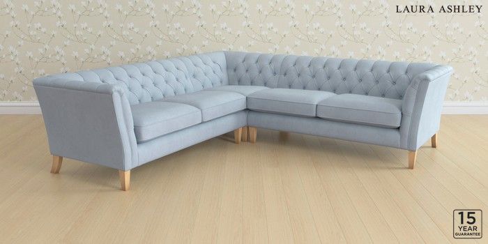 6.12.13 Buy Chatsworth Button Back by Laura Ashley Medium Corner Sofa - Universal Ailsworth Newport Blue Straight Mid - Light Oak from the Laura Ashley online shop Click here to use our website with more accessibility support, for example screen readers