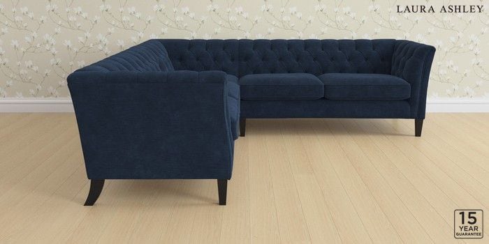 6.12.13 Buy Chatsworth Button Back by Laura Ashley Medium Corner Sofa - Universal Alwyn Velvet Midnight Navy Straight Mid - Black from the Laura Ashley online shop Click here to use our website with more accessibility support, for example screen readers