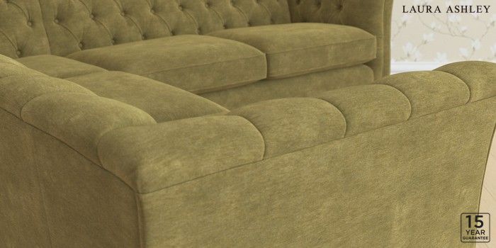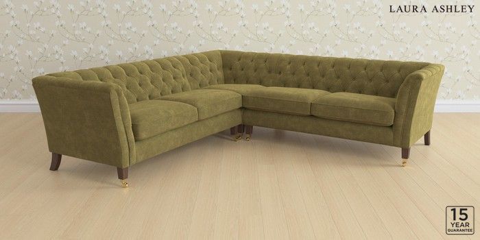 6.12.1 Buy Chatsworth Button Back by Laura Ashley Medium Corner Sofa - Universal Alwyn Velvet Olive Green Straight Brass Castor - Chestnut from the Laura Ashley online shop Click here to use our website with more accessibility support, for example screen readers