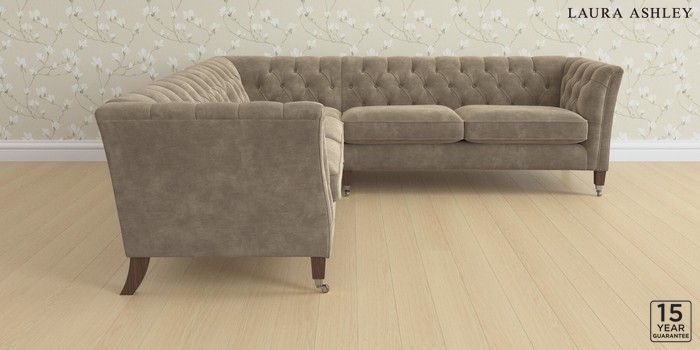 6.12.1 Buy Chatsworth Button Back by Laura Ashley Medium Corner Sofa - Universal Alwyn Velvet Truffle Natural Straight Chrome Castor - Chestnut from the Laura Ashley online shop Click here to use our website with more accessibility support, for example screen readers