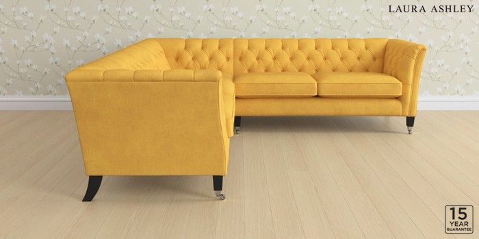 6.12.1 Buy Chatsworth Button Back by Laura Ashley Medium Corner Sofa - Universal Bainton Ochre Yellow Straight Chrome Castor - Black from the Laura Ashley online shop Click here to use our website with more accessibility support, for example screen readers