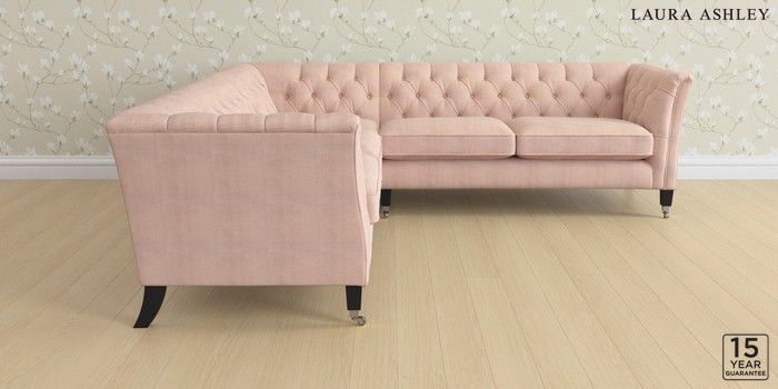 6.12.1 Buy Chatsworth Button Back by Laura Ashley Medium Corner Sofa - Universal Edwin Chenille Blush Pink Straight Chrome Castor - Black from the Laura Ashley online shop Click here to use our website with more accessibility support, for example screen readers