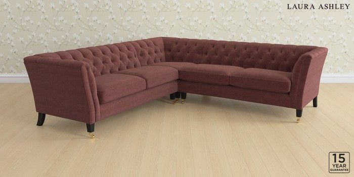 6.12.13 Buy Chatsworth Button Back by Laura Ashley Medium Corner Sofa - Universal Edwin Chenille Burgundy Red Straight Brass Castor - Black from the Laura Ashley online shop Click here to use our website with more accessibility support, for example screen readers