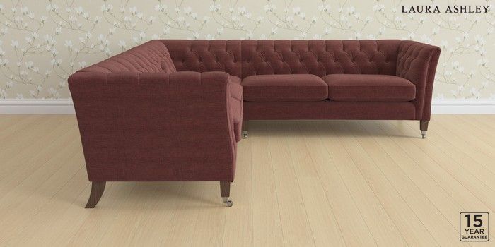 6.12.13 Buy Chatsworth Button Back by Laura Ashley Medium Corner Sofa - Universal Edwin Chenille Burgundy Red Straight Chrome Castor - Chestnut from the Laura Ashley online shop Click here to use our website with more accessibility support, for example screen readers