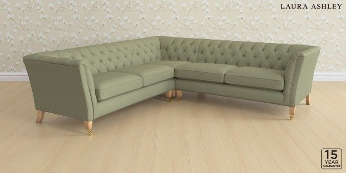 6.12.1 Buy Chatsworth Button Back by Laura Ashley Medium Corner Sofa - Universal Edwin Herringbone Hedgerow Green Straight Brass Castor - Light Oak from the Laura Ashley online shop Click here to use our website with more accessibility support, for example screen readers