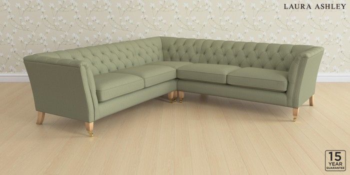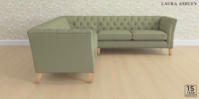 6.12.1 Buy Chatsworth Button Back by Laura Ashley Medium Corner Sofa - Universal Edwin Herringbone Hedgerow Green Straight Mid - Light Oak from the Laura Ashley online shop Click here to use our website with more accessibility support, for example screen readers