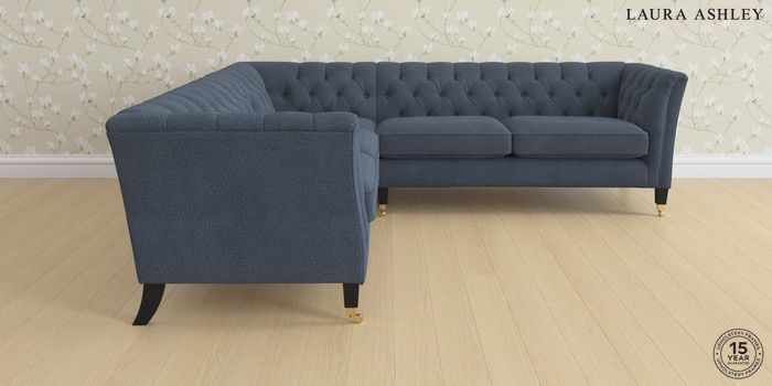 6.12.1 Buy Chatsworth Button Back by Laura Ashley Medium Corner Sofa - Universal Lundar Chenille Navy Blue Straight Brass Castor - Black from the Laura Ashley online shop Click here to use our website with more accessibility support, for example screen readers