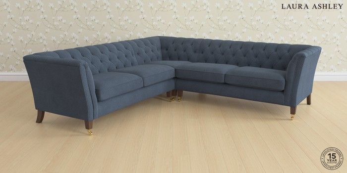 6.12.1 Buy Chatsworth Button Back by Laura Ashley Medium Corner Sofa - Universal Lundar Chenille Navy Blue Straight Mid - Chestnut from the Laura Ashley online shop Click here to use our website with more accessibility support, for example screen readers