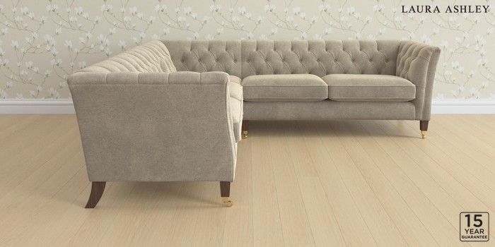 6.12.1 Buy Chatsworth Button Back by Laura Ashley Medium Corner Sofa - Universal Lundar Chenille Truffle Natural Straight Brass Castor - Chestnut from the Laura Ashley online shop Click here to use our website with more accessibility support, for example screen readers