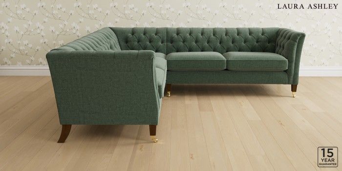 6.12.1 Buy Chatsworth Button Back by Laura Ashley Medium Corner Sofa - Universal Nantmor Fern Green Straight Brass Castor - Teak from the Laura Ashley online shop Click here to use our website with more accessibility support, for example screen readers