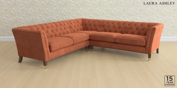 6.12.1 Buy Chatsworth Button Back by Laura Ashley Medium Corner Sofa - Universal Nantmor Rust Orange Straight Brass Castor - Chestnut from the Laura Ashley online shop Click here to use our website with more accessibility support, for example screen readers