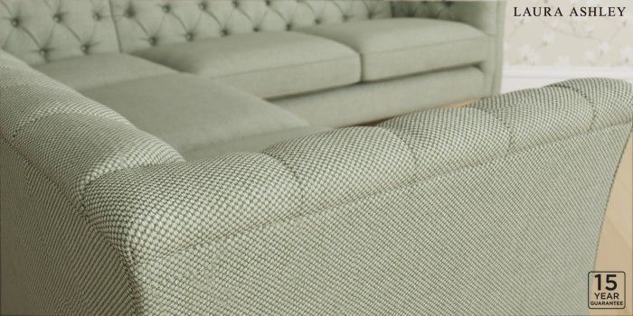 6.12.1 Buy Chatsworth Button Back by Laura Ashley Medium Corner Sofa - Universal Anneliese Sage Green Straight Chrome Castor - Black from the Laura Ashley online shop Click here to use our website with more accessibility support, for example screen readers