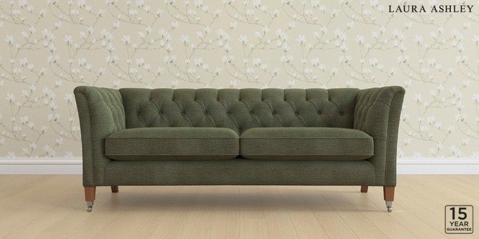 6.12.1 Buy Chatsworth Button Back by Laura Ashley 3 Seater Sofa Edwin Chenille Hedgerow Green Straight Chrome Castor - Teak from the Laura Ashley online shop Click here to use our website with more accessibility support, for example screen readers