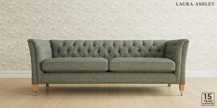 6.12.1 Buy Chatsworth Button Back by Laura Ashley 4 Seater Sofa Bainton Sage Green Straight Chrome Castor - Light Oak from the Laura Ashley online shop Click here to use our website with more accessibility support, for example screen readers