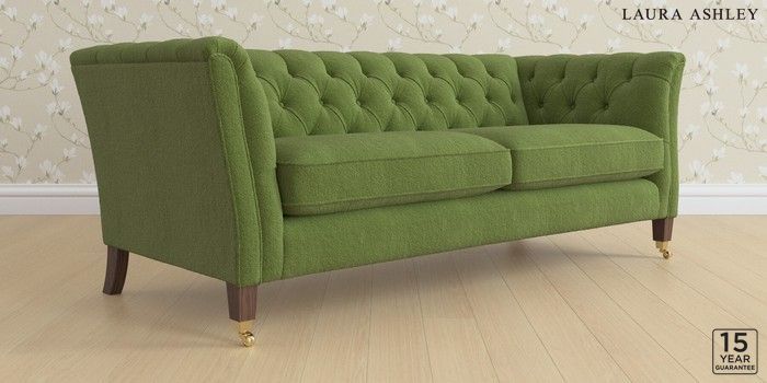 6.12.1 Buy Chatsworth Button Back by Laura Ashley 3 Seater Sofa Tichwell Olive Green Straight Brass Castor - Chestnut from the Laura Ashley online shop Click here to use our website with more accessibility support, for example screen readers