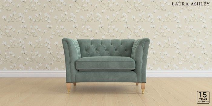 6.12.1 Buy Chatsworth Button Back by Laura Ashley Snuggle Ailsworth Fern Green Straight Brass Castor - Light Oak from the Laura Ashley online shop Click here to use our website with more accessibility support, for example screen readers