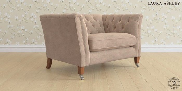 6.12.1 Buy Chatsworth Button Back by Laura Ashley Snuggle Ailsworth Mink Natural Straight Chrome Castor - Teak from the Laura Ashley online shop Click here to use our website with more accessibility support, for example screen readers