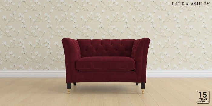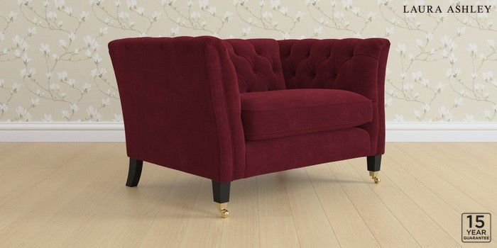 6.12.1 Buy Chatsworth Button Back by Laura Ashley Snuggle Alwyn Velvet Burgundy Red Straight Brass Castor - Black from the Laura Ashley online shop Click here to use our website with more accessibility support, for example screen readers