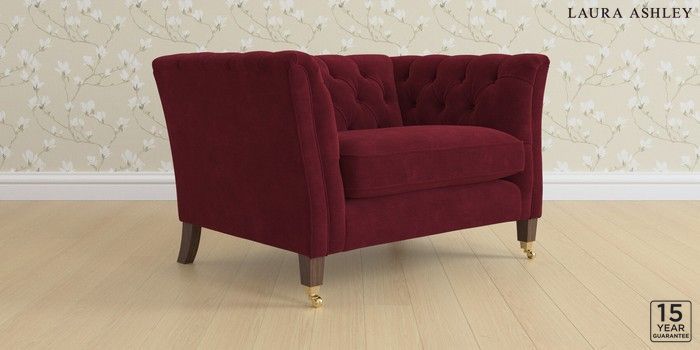6.12.1 Buy Chatsworth Button Back by Laura Ashley Snuggle Alwyn Velvet Burgundy Red Straight Brass Castor - Chestnut from the Laura Ashley online shop Click here to use our website with more accessibility support, for example screen readers