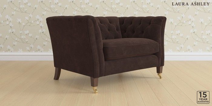 6.12.1 Buy Chatsworth Button Back by Laura Ashley Snuggle Alwyn Velvet Chocolate Brown Straight Brass Castor - Chestnut from the Laura Ashley online shop Click here to use our website with more accessibility support, for example screen readers