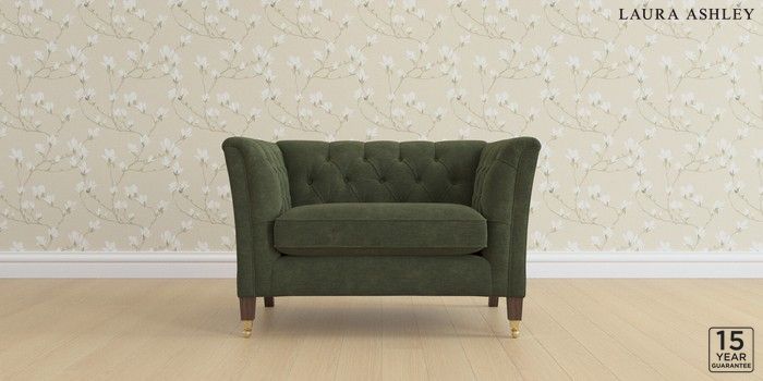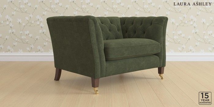 6.12.1 Buy Chatsworth Button Back by Laura Ashley Snuggle Alwyn Velvet Ivy Green Straight Brass Castor - Chestnut from the Laura Ashley online shop Click here to use our website with more accessibility support, for example screen readers
