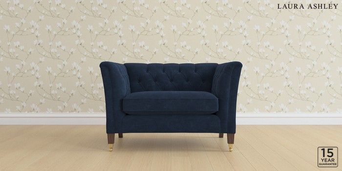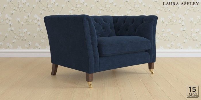 6.12.1 Buy Chatsworth Button Back by Laura Ashley Snuggle Alwyn Velvet Midnight Navy Straight Brass Castor - Chestnut from the Laura Ashley online shop Click here to use our website with more accessibility support, for example screen readers