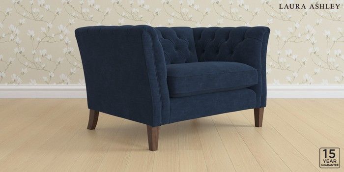 6.12.1 Buy Chatsworth Button Back by Laura Ashley Snuggle Alwyn Velvet Midnight Navy Straight Mid - Chestnut from the Laura Ashley online shop Click here to use our website with more accessibility support, for example screen readers