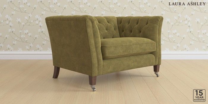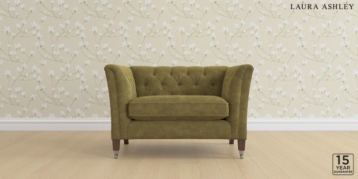 6.12.1 Buy Chatsworth Button Back by Laura Ashley Snuggle Alwyn Velvet Olive Green Straight Chrome Castor - Chestnut from the Laura Ashley online shop Click here to use our website with more accessibility support, for example screen readers