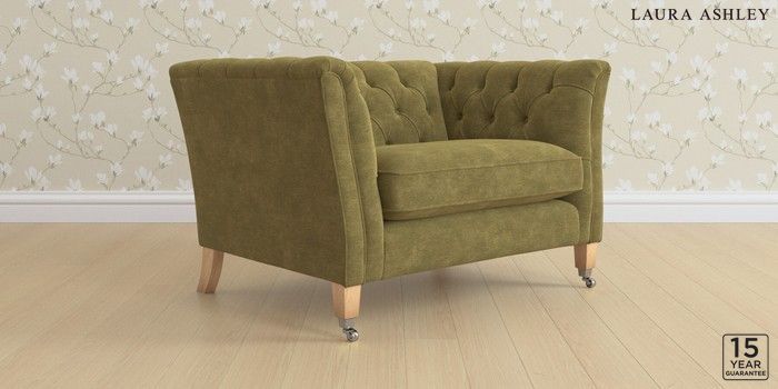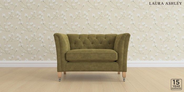 6.12.1 Buy Chatsworth Button Back by Laura Ashley Snuggle Alwyn Velvet Olive Green Straight Chrome Castor - Light Oak from the Laura Ashley online shop Click here to use our website with more accessibility support, for example screen readers